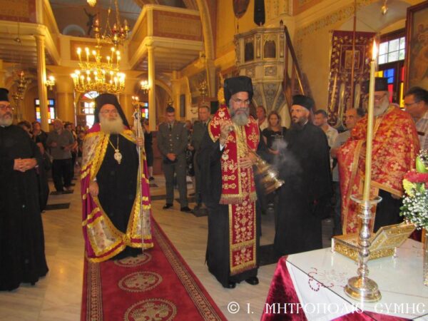Τήν Κυριακή καὶ ὥρα 08:00 πραγματοποιήθηκε ὁμοίως ἡ ὑποδοχὴ τοῦ ἱεροῦ Λειψάνου στὸν Ἐνοριακὸ Ἱ. Ναὸ τοῦ Ἁγίου Γεωργίου Ἄνω Χώρας Σύμης καί ἐν συνεχείᾳ ἔλαβε χώρα ὁ Ὄρθρος χοροστατοῦντος τοῦ Σεβ. Μητροπολίτου Ἱεραπύτνης καὶ Σητείας κ. Κυρίλλου, ἐνῶ ἀκολούθησε ἡ Δισαρχιερατικὴ πανηγυρικὴ Θεία Λειτουργία, τήν ὁποία τέλεσε ὁ Ἅγιος Ἱεραπύτνης, συλλειτουργούντος τοῦ Σεβ. Ποιμενάρχου μας κ. Χρυσοστόμου καί τῶν Κρητῶν, καθώς καί πάντων τῶν κληρικῶν τῆς Νήσου μας.