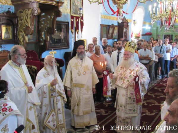 Μετά τήν ἀπόλυση σ’ ὅλους τούς πιστούς πού κατέκλυσαν μέσα καί ἔξω τόν παλαίφατο Ναό τοῦ Ἁγίου Γεωργίου, ἔδωσε ὡς εὐλογία εἰκονίδιο τοῦ Ὁσίου καί παράλληλα εἰδικά γιά τήν περίπτωση Ἐνθύμιο – Δίπτυχο κατασκευασμένο μέ τήν φροντίδα τοῦ Σεβ. Ποιμενάρχου μας κ. Χρυσοστόμου.