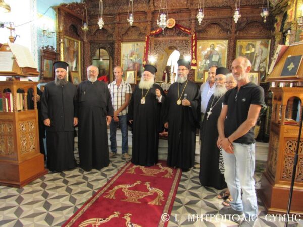 Πρό τῆς ἀπολύσεως ὁ Σεβ. Ποιμενάρχης μας κ. Χρυσόστομος εὐχαρίστησε θερμά πρωτίστως τόν Σεβ. κ. Κύριλλο, ἀλλά καί τόν σεβαστό Γέροντα Ἡγούμενο π. Μεθόδιο, ὁ ὁποῖος εἶχε καί τήν ἰδιαίτερη εὐλογία νά πραγματοποιήσει τήν ἀνακομιδή τῶν Ἱερῶν Λειψάνων τοῦ Ὁσίου, κατόπιν παροτρύνσεως τοῦ συγχρόνου μας Ὁσίου Πορφυρίου τοῦ Καυσοκαλυβίτου. Ὡς ἐλάχιστο δεῖγμα εὐχαριστίας, ὁ Σεβ. Μητροπολίτης μας προσέφερε στόν Ἅγιο Ἱεραπύτνης ἱερό ἐγκόλπιο, ἐνῶ στόν π. Μεθόδιο ἐπιστήθιο Σταυρό, καθώς καί ἄλλες εὐλογίες στούς λοιπούς Πατέρες. Ἀντιφώνησε συγκινητικά ὁ Σεβ. κ. Κύριλλος, ἀναφερόμενος στήν μακροχρόνια σχέση ἀγάπης καί ἀδελφικῆς φιλίας πού ξεκίνησε μέ τόν Ἅγιο Σύμης τά χρόνια πού ἐκεῖνος ἦταν Μοναχός στό Ἁγιώνυμο Ὄρος.