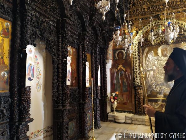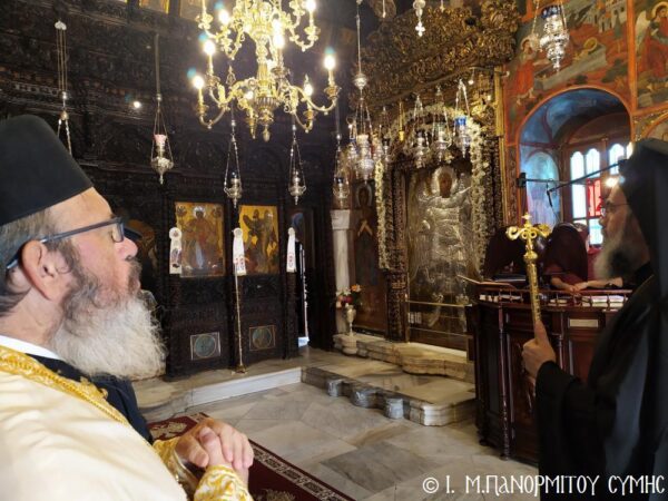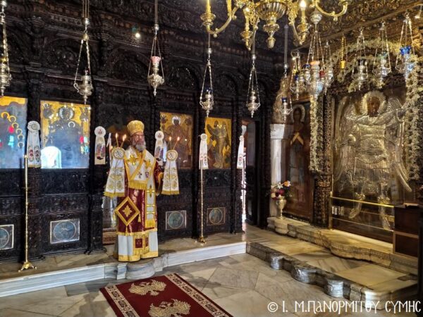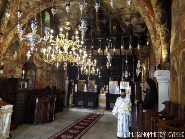 Την Ακολουθία του Όρθρου και τη Θεία Λειτουργία τέλεσε την Κυριακή του Παραλύτου, 10 Μαΐου 2020 στην Ιερά Μονή Ταξιάρχου Μιχαήλ του Πανορμίτου ο Σεβασμιώτατος Μητροπολίτης Σύμης, Τήλου, Χάλκης και Καστελλορίζου κ. Χρυσόστομος.