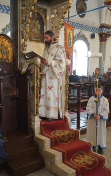 Επί τετραήμερο, από την Παρασκευή 18, έως και Δευτέρα 21 Μαρτίου 2022, ο Σεβασμιώτατος Μητροπολίτης Σύμης, Τήλου, Χάλκης και Καστελλορίζου κ. Χρυσόστομος, κινούμενος από ιδιαίτερη ποιμαντική ευαισθησία προς τους ακρίτες κατοίκους του Καστελλορίζου, της πλέον απομεμακρυσμένης Νήσου της Ιεράς Μητροπόλεως, πραγματοποίησε εκεί, μεσούσης σχεδόν της Αγίας και Μεγάλης Τεσσαρακοστής Ποιμαντική περιοδεία, συνοδευόμενος από τον Διάκονό του π. Γεώργιο Κακακιό και τον υιό αυτού, Ιεροψάλτη κ. Πανορμίτη Κακακιό, όστις διηκόνησε και το αναλόγιο κατά τις Ιερές Ακολουθίες.