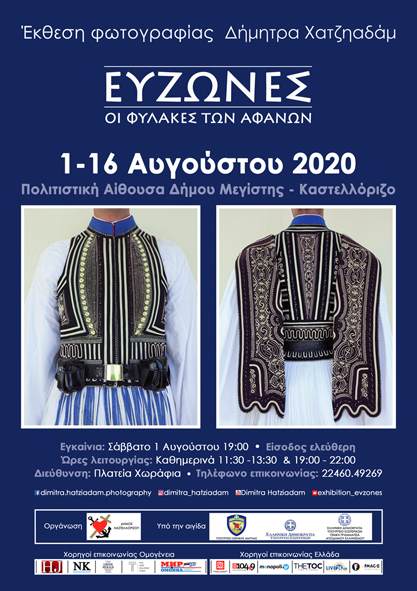 Περιλαμβάνει 45 έργα, από τα οποία 6 βασικά είναι σε φυσικό μέγεθος Εύζωνα 2 μέτρων. Το φωτογραφικό υλικό συνοδεύεται από μαρτυρίες Ευζώνων και ηχητικό ντοκουμέντο των δραστηριοτήτων τους. Σκοπός της έκθεσης είναι να διεγερθούν συναισθήματα μέσω των αισθήσεων, καθώς το κοινό έχει τη δυνατότητα να δεί και να αγγίξει από κοντά τσαρούχια και φουστανέλα. Παράλληλα με την έκθεση, ο επισκέπτης του νησιού θα έχει την ευκαιρία να θαυμάσει και ένα δρώμενο, με φωτογραφίες από τις 6 διαφορετικές στολές των ανδρών της Προεδρικής Φρουράς. Τα εκθέματα τοποθετήθηκαν σε σπίτια κατά μήκος του κόλπου της Μεγίστης, έτσι ώστε, κατά την είσοδό του στο λιμάνι, ο επισκέπτης να αντικρίζει από μακριά τις στολές των Ευζώνων.