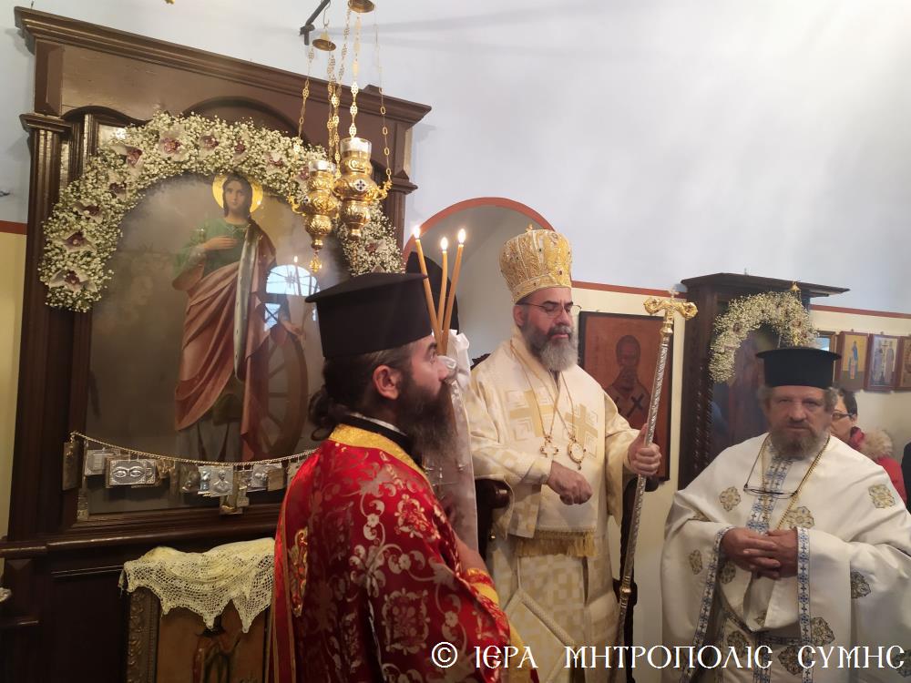 Ἀφ’ ἑσπέρας τῆς ἑορτῆς, Κυριακὴ 24η Νοεμβρίου 2019, ὁ Σεβ. Ποιμενάρχης μας κ. Χρυσόστομος χοροστάτησε τοῦ Μεγάλου ἑορτίου Ἑσπερινοῦ στόν πανηγυρίζοντα Ἱερό Ναό τοῦ Ἁγίου Μερκουρίου Νημπορειοῦ Σύμης, συμπαραστατούμενος ὑπό τοῦ Γεν. Ἀρχιερατικοῦ Ἐπιτρόπου Πρωτοπρ. Στεφάνου Μακρῆ καί τοῦ Διακόνου π. Γεωργίου Κακακιοῦ.