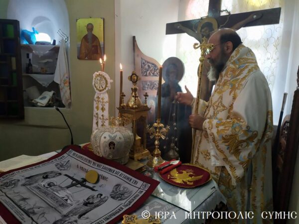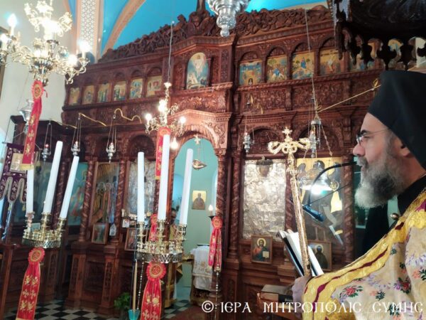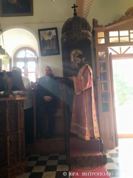 Ὁ Σεβασμιώτατος δραττόμενος τῆς εὐλογημένης αὐτῆς εὐκαιρίας, λαμβάνοντας ἀφορμή ἀπό τήν εὐαγγελική περικοπή τῆς Ι´ Κυριακῆς τοῦ Λουκᾶ, αὐτῆς τῆς συγκύπτουσας γυναίκας, ὁμίλησε πρός τούς ἐκκλησιαζομένους πιστούς, περί τοῦ θαύματος τῆς ἀποκαταστάσεως τῆς ὑγείας αὐτῆς ἀπό τόν Κύριο. Ἀνεφέρθη ἀκόμα καί καυτηρίασε τήν ὑποκριτική στάση τοῦ ἀρχισυναγώγου, ἡ ὁποία ἀπομακρύνει ἀπό τήν ζωή τῶν ἀνθρώπων τήν Χάρη τοῦ Θεοῦ καί παρότρυνε τούς ἀκροωμένους νά ταυτίζονται μέ τήν ἀλήθεια καί νά τήν ἐφαρμόζουν στήν ζωή τους, ἀπομακρυνόμενοι ἀπό τήν σοβαρή ἁμαρτία τῆς κατακρίσεως καί ἐνασχολήσεως μέ θέματα τῶν ἄλλων.