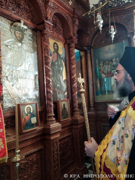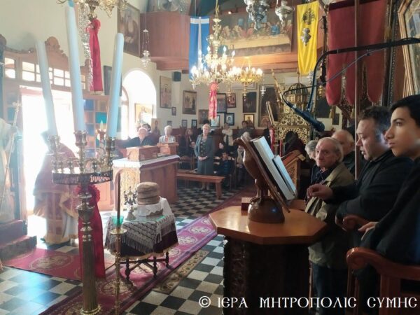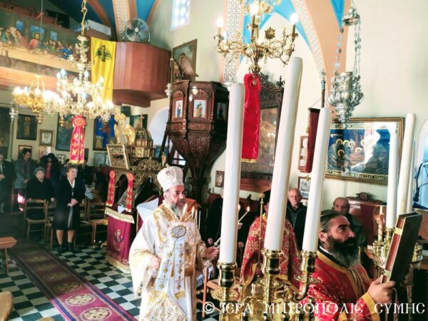 Πρό τῆς Ἀπολύσεως ἐτελέσθη ἡ Ἀρτοκλασία καί μετά τό πέρας τῆς Θ. Λειτουργίας οἱ ἐκκλησιασθέντες ἀπόλαυσαν μέ τόν Ποιμενάρχη τους τόν φρεσκοψημένο καφέ καί τά παραδοσιακά κεράσματα τῆς πατροπαράδοτης συμαϊκῆς φιλοξενίας.