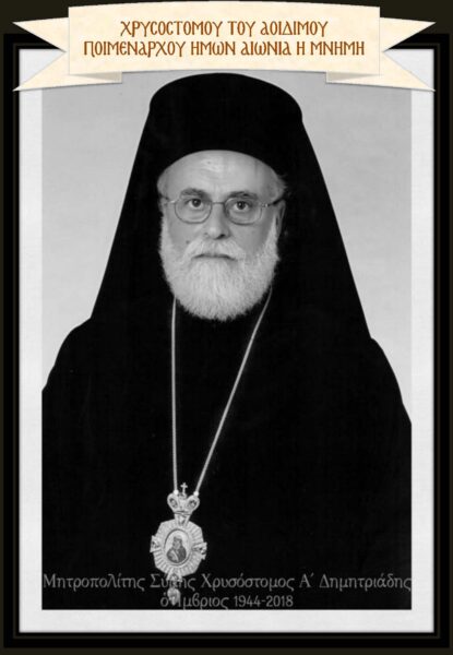 Σε κλίμα ιδιαιτέρας συγκινήσεως, τελέσθη κατά την Πέμπτη 9η Ιανουαρίου 2020 στην Ιερά Μονήν Ταξιάρχου Μιχαήλ του Πανορμίτου, το διετές Μνημόσυνο του μακαριστού Μητροπολίτου Σύμης, Τήλου, Χάλκης και Καστελλορίζου κυρού Χρυσοστόμου Δημητριάδη του Ιμβρίου, του και πρώτου Μητροπολίτου της εν Δωδεκανήσω Ιεράς ταύτης Μητροπόλεως του Οικουμενικού Θρόνου.