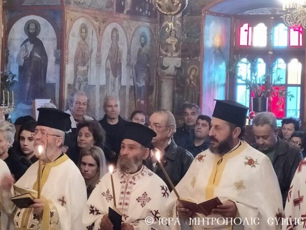 Ο Σεβασμιώτατος Ποιμενάρχης κ. Χρυσόστομος, ετέλεσε την Θεία Λειτουργία και εν συνεχεία προέστη του Ιερού Μνημοσύνου. Συλλειτουργοί του ήσαν ο Πανοσιολογιώτατος Καθηγούμενος της Ι. Μονής Πανορμίτου Αρχιμανδρίτης του Οικουμενικού Θρόνου Αντώνιος Πατρός, ο Γεν. Αρχιερατικός Επίτροπος της Ι. Μητροπόλεώς μας Πρωτοπρ. Στέφανος Μακρής, άπαντες οι Εφημέριοι της Σύμης, εκ των οποίων σημειωτέον οι τέσσαρες αποτελούν χειροτονίες του αοιδίμου Ιεράρχου, ως και ο Διάκονός μας π. Γεώργιος Κακακιός.