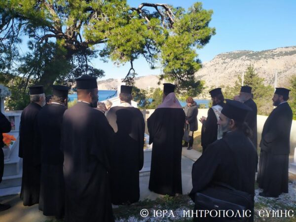 Επίσης πολλοί ήσαν κι εκείνοι που προσήλθαν από την Σύμη, καθώς και οι εργαζόμενοι της Ι. Μονής Πανορμίτου, διά να τιμήσουν την μνήμη του Μακαριστού Μητροπολίτου. Λίαν συγκινητική τέλος ήταν και η εμπνευσμένη προσλαλιά του Σεβ. Μητροπολίτου μας κ. Χρυσοστόμου, περί της προσωπικότητος και της εν γένει προσφοράς του εκλιπόντος εις την νεοσύστατον Μητρόπολιν των ακριτικών μας Νήσων.