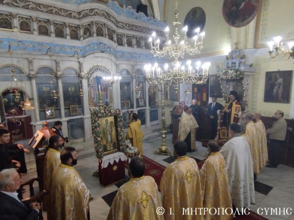 Μετά την απόλυση, οι συμμετέχοντες κληρικοί και λαικοί ανέβηκαν στο παρακείμενο Αρχονταρίκι του Ναού, όπου έκαστος ευχήθη στον εορτάζοντα Μητροπολίτη μας και εδέχθη τα εόρτια κεράσματα.