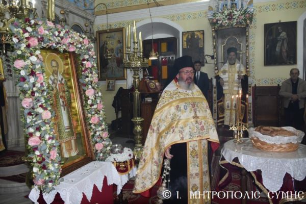Τέλος διένειμε το αντίδωρον και μικρόν εικονίδιον του Ιερού Χρυσοστόμου, εις έναν έκαστον των εκκλησιαζομένων, δεχόμενος τας εγκάρδιες ευχές του ευσεβούς ποιμνίου του.