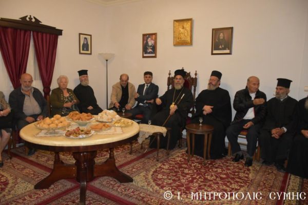 Εν συνεχεία, το πυκνό εκκλησίασμα μετέβη στο Μητροπολιτικό Μέγαρο, όπου ευχήθηκε και αύθις στον εορτάζοντα Ποιμενάρχη του και δέχθηκε πλούσια δοχή και εόρτια κεράσματα.