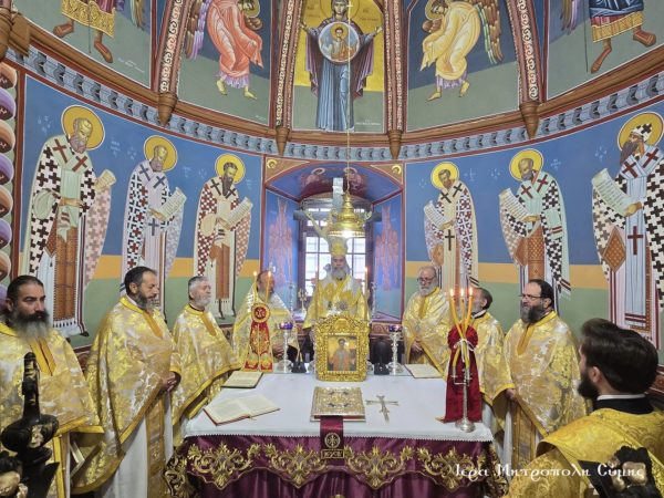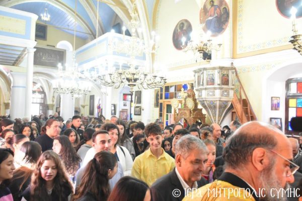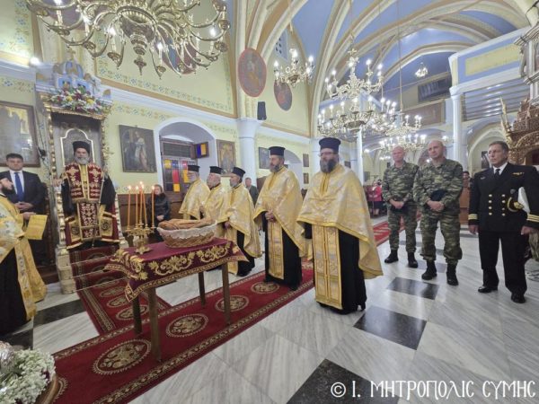 Σήμερα το πρωί, Τετάρτη 13η Νοεμβρίου, κυριώνυμη ημέρα της εορτής, ο Σεβ. Μητροπολίτης μας κ. Χρυσόστομος, χοροστάτησε στον Όρθρο και τέλεσε την Θ. Λειτουργία ομοίως στον Ιερό Μητροπολιτικό Ναό του Τιμίου Προδρόμου Σύμης με συλλειτουργούς του τον Πανοσιολ. Καθηγούμενο της Ι. Μονής Πανορμίτου Αρχιμ. Αντώνιο Πατρό, ο οποίος προτροπή του Σεβ. Μητροπολίτου μας εκήρυξε τον θείον λόγον, τον Γενικό Αρχιερατικό Επίτροπο και Εφημέριο του Μητροπολιτικού Ναού Πρωτοπρ. Στέφανο Μακρή, τον Οικονόμον π. Χρήστο Σταθόπουλο και τους Πρεσβυτέρους, π. Παντελεήμονα Μακρόπουλο, τον π. Γεώργιο Χατζηχρυσάφη, τον π. Αντώνιο Μανιά, τον π. Γεώργιο Κακακιό και τον Ιεροδιάκονο π. Παύλο Τερεζάκη. Ξεχωριστές παρουσίες ήταν του Δημάρχου Σύμης κ. Ελευθερίου Παπακαλοδούκα, του Αντιδημάρχου Σύμης κ. Νικήτα Γρύλλη, του Διοικητού του 549 Τ.Ε. Αντισυνταγματάρχη κ. Στυλιανού Φωκά, του Λιμενάρχη Σύμης κ. Σταύρου Μακρή, της Προέδρου της Ενώσεως Γυναικών Σύμης κ. Σεβαστής Νικόλη και των εκπροσώπων των λοιπών τοπικών Αρχών, Φορέων και Συλλόγων.