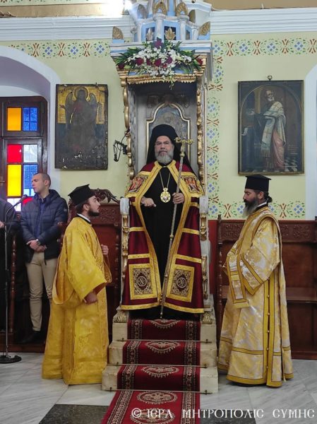 Το εσπέρας του Σαββάτου 12ης Νοεμβρίου 2022, τελέσθηκε ο Μέγας Πανηγυρικός Εσπερινός, χοροστατούντος του Σεβασμιωτάτου, πλαισιουμένου υπό του Ιερού κλήρου της Νήσου μας. Τα δε αναλόγια διακόνησαν γλυκυφθόγγως ο Πρωτοψάλτης του Μητροπολιτικού Ναού κ. Δημοσθένης Γιανναράς και ο Ιεροψάλτης κ. Πανορμίτης Κακακιός μεθ’ ετέρων. Μεταξύ των συμμετεχόντων πιστών, παρέστησαν ο Βουλευτής Δωδεκανήσου κ. Βασίλειος Υψηλάντης και ο Διοικητής της Δ.Α.Ν. Σύμης Συνταγματάρχης κ. Παναγιώτης Βρανάς.