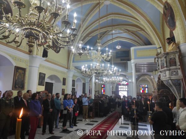 Τα δε αναλόγια διακόνησαν γλυκυφθόγγως ο Πρωτοψάλτης του Μητροπολιτικού Ναού κ. Δημοσθένης Γιανναράς και οι Ιεροψάλτες κ. Αγαπητός Μιχελλής, κ. Πανορμίτης Κακακιός και κ. Νικόλαος Καμπύλης μεθ’ ετέρων.