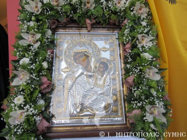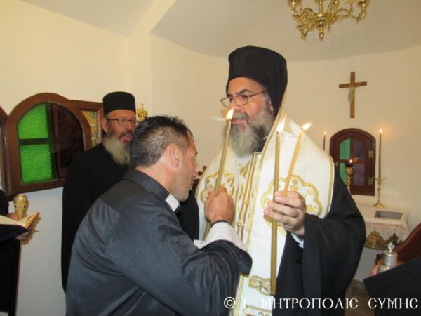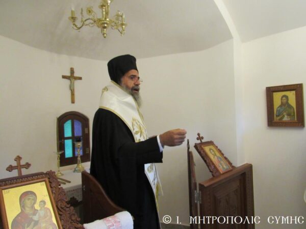 Ο Σεβασμιώτατος αφού τέλεσε τον Αγιασμό, την διατεταγμένη Ακολουθία των Θυρανοιξίων και την Αρτοκλασία, ομίλησε εμπνευσμένα συγχαίρων την οικογένεια των Κτιτόρων για την ευλάβειά τους προς την Υπεραγία Θεοτόκο, τις πρεσβείες της Οποίας επικαλέστηκε για όλους τους Χριστιανούς. Τέλος ανεφέρθη στο θαυμαστό γεγονός, που επιτέλεσε η θαυματουργή Εικόνα της Θεομήτορος στην Ι. Μονή Βατοπεδίου του Αγίου Όρους και εξ αυτού ονομάστηκε «Παραμυθία», δηλαδή Παρηγορήτρια: