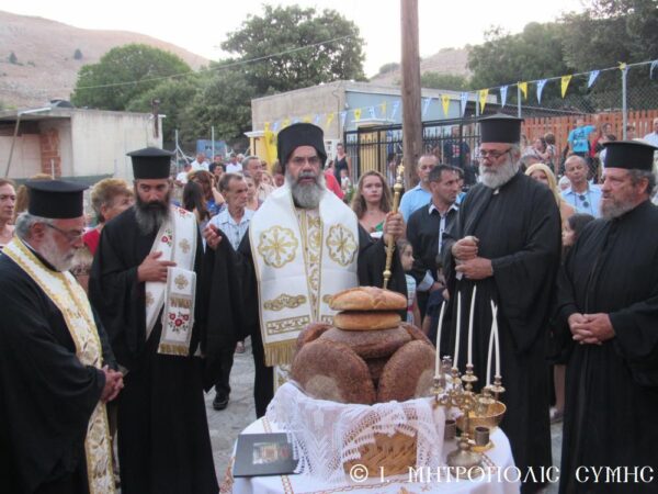 Μετά το πέρας ο Σεβασμιώτατος επέδωσε, ως ευλογία εις έναν έκαστο, εικονίδιο της Παναγίας Παραμυθίας με την σχετική ενθύμηση. Τέλος οι ευσεβείς Κτίτορες προσέφεραν στους συμμετέχοντες, τα πατροπαράδοτα κεράσματα της Συμαϊκής φιλοξενίας.