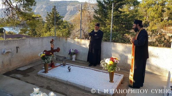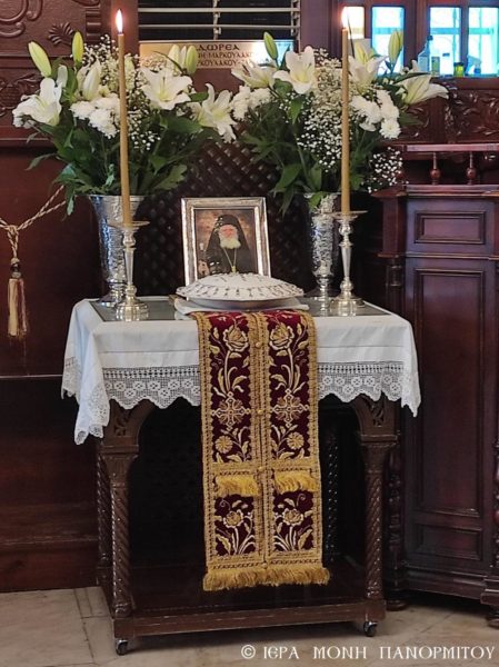 Αναφέρεται δε, ότι το εσπέρας της προτεραίας, ο Πανοσιολ. Καθηγούμενος π. Αντώνιος μετά του π. Ιωσήφ τέλεσαν επί του τάφου του μεταστάντος Γέροντος Τρισάγιον υπέρ αναπαύσεως της ψυχής αυτού.