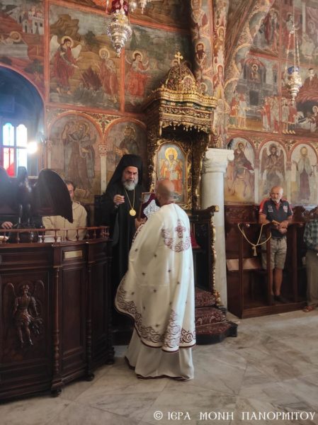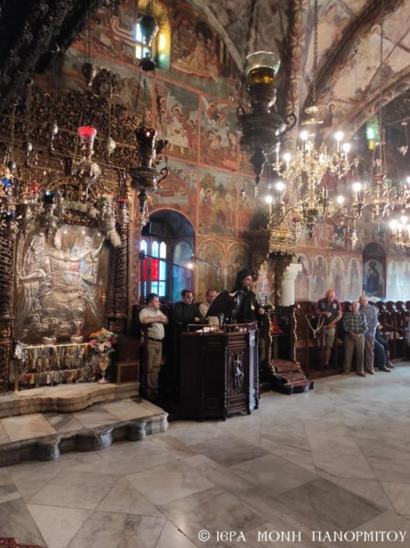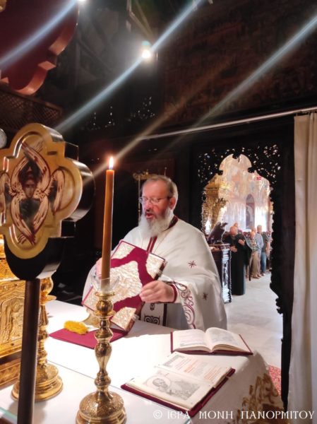 Ο Σεβασμιώτατος Μητροπολίτης Σύμης κ. Χρυσόστομος, χοροστάτησε του Όρθρου και της Θείας Λειτουργίας, την οποία τέλεσε ο Πανοσιολ. Καθηγούμενος της Ιεράς Μονής και Αρχιμανδρίτης του Οικουμενικού Θρόνου Αντώνιος Πατρός, με συλλειτουργούς του τον Αρχιμανδρίτη Ιωσήφ Αδαμόπουλο φιλοξενούμενο κληρικό εκ της Ιεράς Μητρόπολης Νικαίας και τον Αρχιμανδρίτη Ανδρέα Δημητρίου.