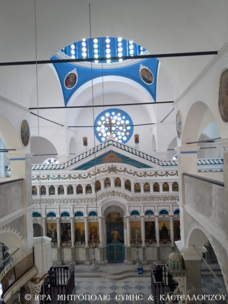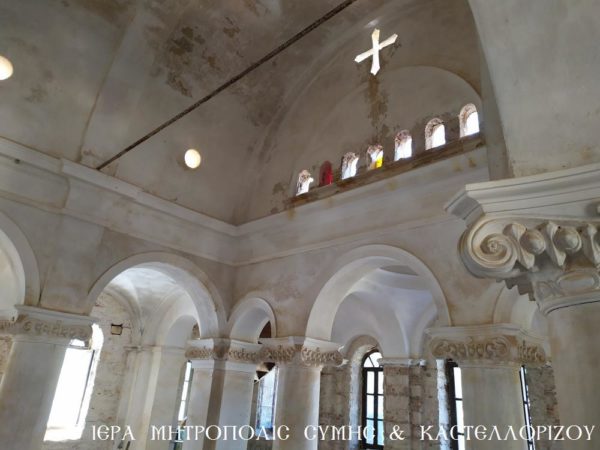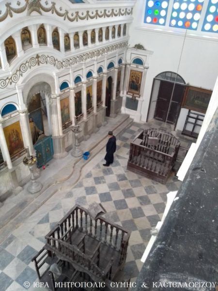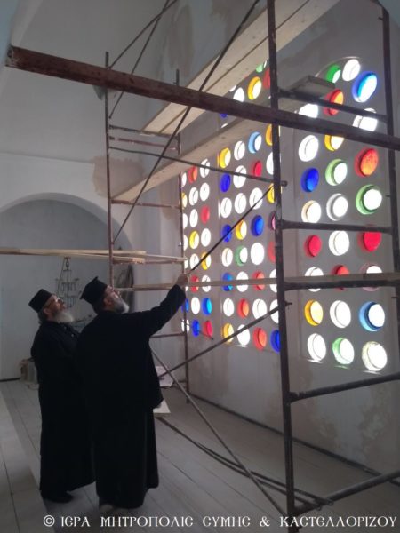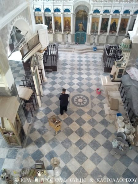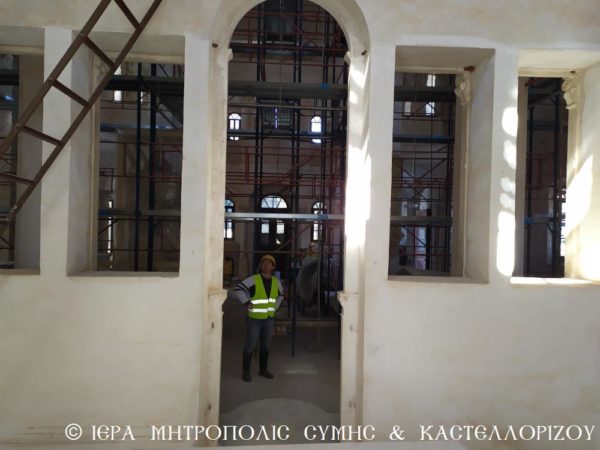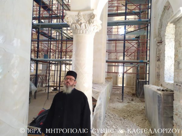 Παράλληλα ο Ποιμενάρχης, αξιοποιώντας σ’ όλα τα επίπεδα την εκεί παρουσία του, επισκέφθηκε και επιθεώρησε τις ανακαινιστικές εργασίες που πραγματοποιούνται αυτήν την περίοδο σε δύο Ι. Ναούς της Νήσου. Αφ’ ενός πρόκειται για τις εργασίες αποπερατώσεως, αποκαταστάσεως και εξοπλισμού του ιστορικού Ιερού Ναού Αγίου Γεωργίου «Σαντραπέ» Καστελλορίζου, οι οποίες προχωρούν με έντονους ρυθμούς και είναι έργον το οποίο ευγενώς ανέλαβε και δωρεάν προσφέρει η Εταιρεία «ΑΙΓΕΑΣ ΑΜΚΕ» του Ευεργέτου κ. Αθανασίου Μαρτίνου στην τοπική μας Εκκλησία και την εν Καστελλορίζω τοπική κοινωνία.