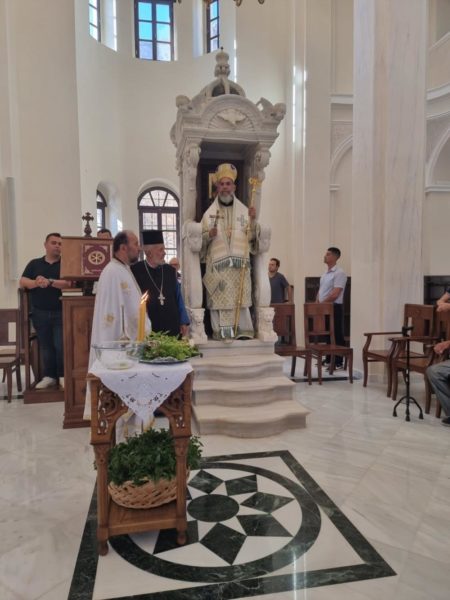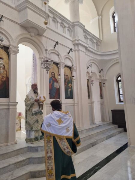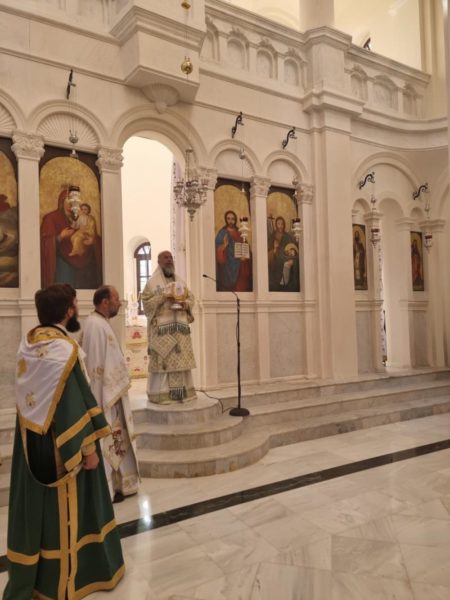 Σήμερα Πέμπτη 14η Σεπτεμβρίου, εορτή της Υψώσεως του Τιμίου Σταυρού, ο Σεβασμιώτατος κ. Χρυσόστομος, χοροστάτησε εις τον Όρθρο και τέλεσε την Θεία Λειτουργία στον καλλιμάρμαρο Ι. Ναό Αγίου Γεωργίου «Σαντραπέ», με συλλειτουργούς του τον π. Γεώργιο Αποστολακίδη και τον Ιεροδιάκονο π. Παύλο Τερεζάκη, συμπροσευχομένου του Πρωτοπρ. π. Γεωργίου Μαλτέζου, επί 53 έτη Αρχιερατικού Επιτρόπου και Εφημερίου εκείσε.