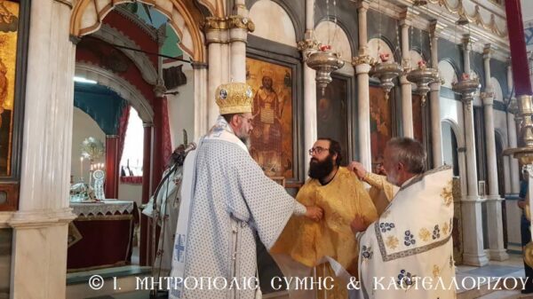 Την εις Πρεσβύτερον Χειροτονία του Διακόνου π. Χρήστου Συμεωνίδη τέλεσε ο Σεβασμιώτατος Μητροπολίτης Σύμης, Τήλου Χάλκης και Καστελλορίζου κ. Χρυσόστομος στο πλαίσιο της Ποιμαντικής επίσκεψής του την Κυριακή των Αγίων Πάντων στο Καστελλόριζο. Έτσι η Κυριακή των Αγίων Πάντων, 14 Ιουνίου 2020 είναι μια ιστορική μέρα για την τοπική Εκκλησία του Καστελλορίζου.