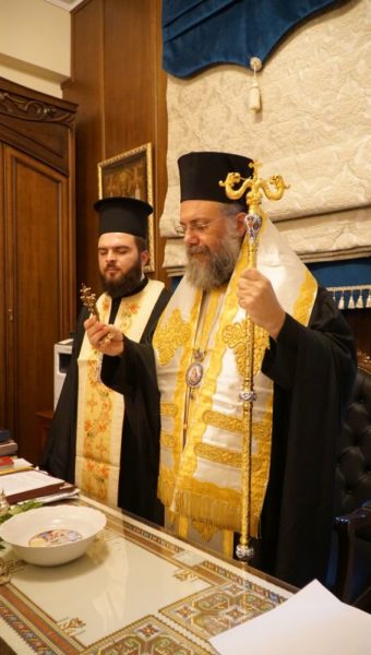 Ο Σεβασμιώτατος αγίασε και ευλόγησε τους Ιερείς και τους υπαλλήλους των Γραφείων της τοπικής Εκκλησίας και ευχήθηκε στον καθένα υγεία, δύναμη και ζήλο ώστε να υπηρετούμε την Εκκλησία και τον παράγοντα άνθρωπο κατά τον καλύτερο τρόπο.