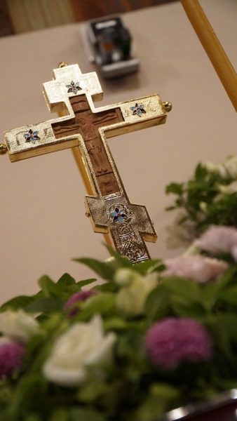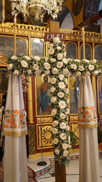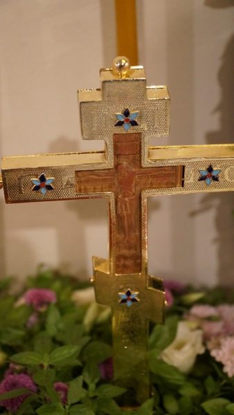 Πριν το τέλος της Θείας Λειτουργίας τελέσθηκε η ακολουθία της Υψώσεως του Τιμίου Σταυρού.