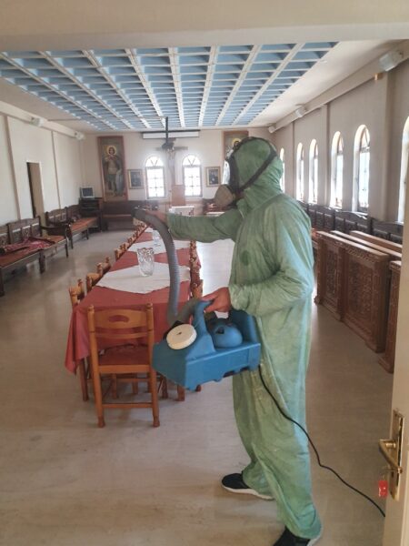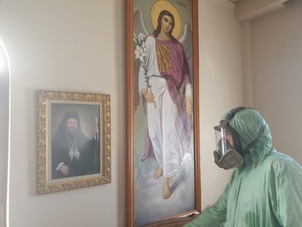 Ακόμα όπως αναφέρει η ανακοίνωση: “Παράλληλα πραγματοποιήθηκε απολύμανση στους χώρους του Επισκοπείου, των διοικητικών Γραφείων της Ιεράς Μητροπόλεως και του Εκκλησιαστικού Γηροκομείου «ο Άγιος Νικόλαος». Τέλος να αναφερθεί ότι συνεχίζονται οι προγραμματισμένες απολυμάνσεις για τον covid-19 στους Ιερούς Ναούς και τις Ιερές Μονές της Ιεράς μας Μητροπόλεως για την ασφάλεια όλων μας όπως επίσης στους χώρους των Πνευματικών Κέντρων και των ενοριακών συσσιτίων υπό την επίβλεψη του Σεβασμιωτάτου Ποιμενάρχου μας κ. Χρυσοστόμου”.