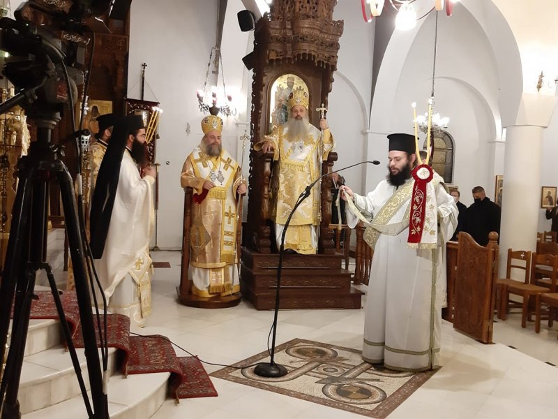 Τηρώντας τα μέτρα κατά της πανδημίας του κορωνοϊού, εορτάσθηκε η σεπτή μνήμη του Αγίου ενδόξου Πατρός ημών Νεκταρίου, Επισκόπου Πενταπόλεως του Θαυματουργού, στον ομώνυμο Ιερό Ναό στην πόλη των Τρικάλων.