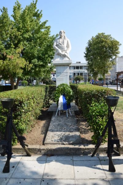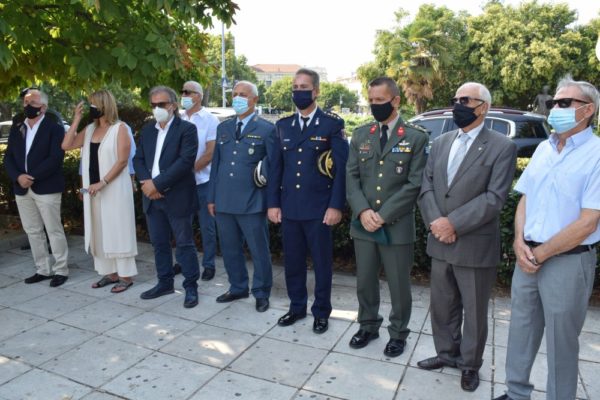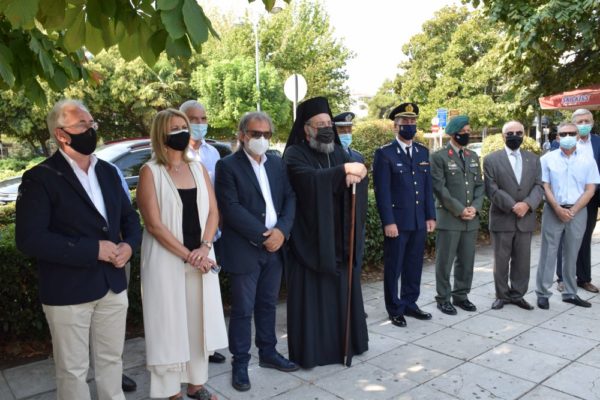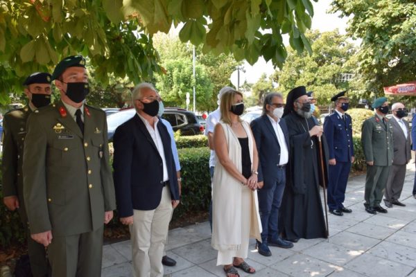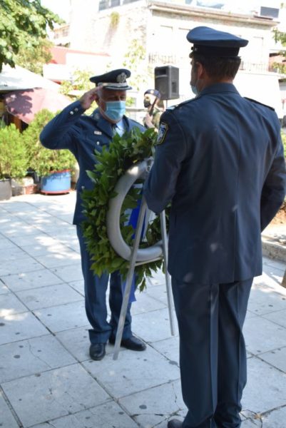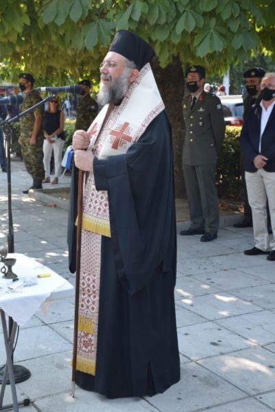 Στην συνέχεια ο Σεβασμιώτατος τέλεσε επιμνημόσυνη δέηση στην κεντρική πλατεία της πόλης των Τρικάλων. Εκεί έγινε και κατάθεση στεφάνων από φορείς της πόλης.