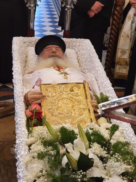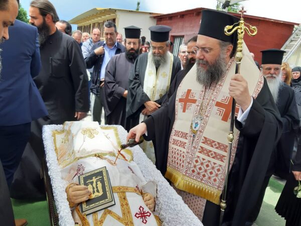 Το πρωί της Δευτέρας 1 Ιουνίου, τελέσθηκε η Θεία Λειτουργία από ιερείς της πόλεως και των χωρίων. Στην Εξόδιο Ακολουθία το μεσημέρι χοροστάτησαν ο Σεβασμιώτατος Μητροπολίτης Αυλώνος κ. Χριστόδουλος και ο Σεβασμιώτατος Μητροπολίτης Τρίκκης και Σταγών κ. Χρυσόστομος με τη συμμετοχή πλήθους Ιερέων.