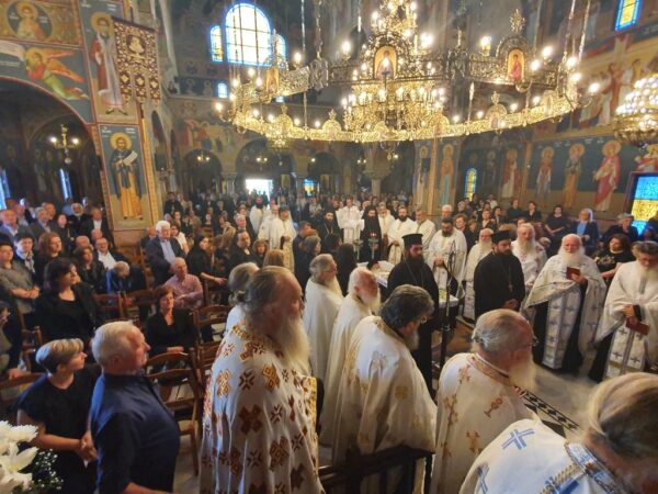 Πλήθος κόσμου συγκεντρώθηκε στον Ιερό Ναό Ζωοδόχου Πηγής Σαραγίων Τρικάλων, για την Εξόδιο Ακολουθία του μακαριστού Πρωτοπρεσβυτέρου Αθανασίου Κουμπή που κοιμήθηκε στις 31 Μαΐου.