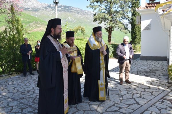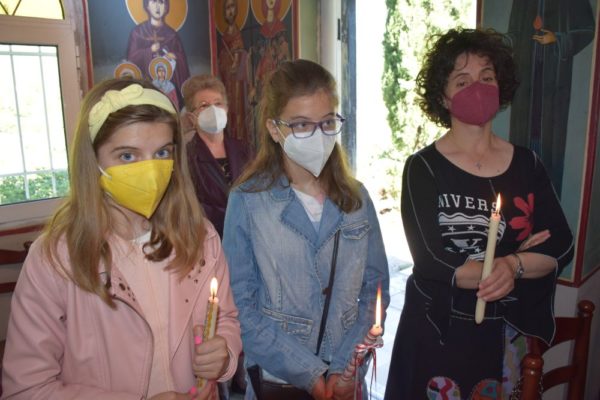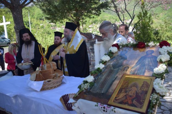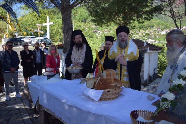 Στη Θεία Λειτουργία που τελέστηκε μέσα σε κλίμα πανηγυρικό και ευφρόσυνο την Τρίτη της Διακαινησίμου 27 Απριλίου 2022 το πρωί χοροστάτησε ο Σεβασμιώτατος Μητροπολίτης Τρίκκης, Γαρδικίου και πύλης κ. Χρυσόστομος, ενώ ο χορός των ψαλτών απέδωσε με νόημα και εμμελώς τους ύμνους προς τιμήν των Αγίων.