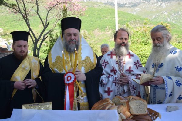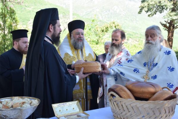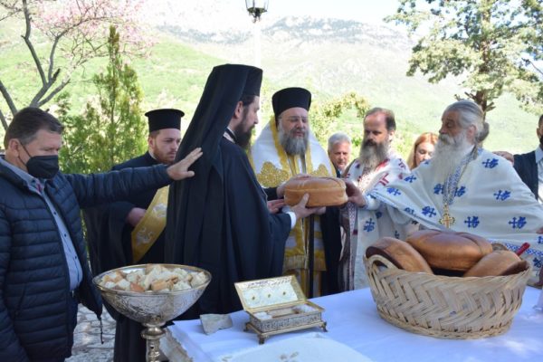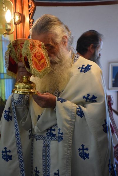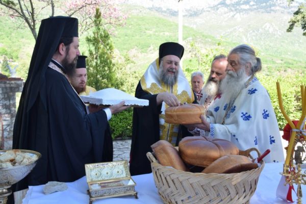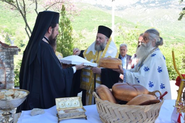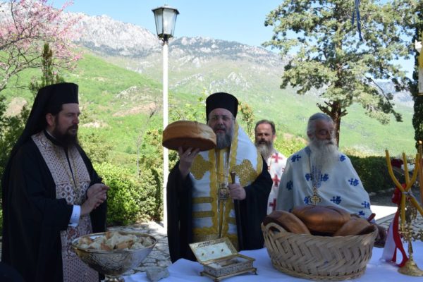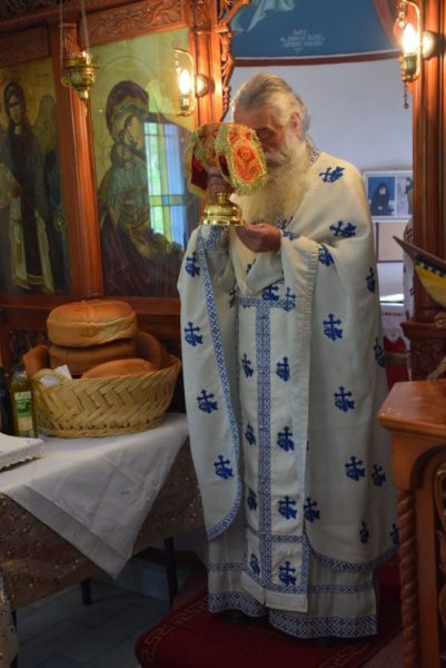 Ακολούθησε η Ιερά Λιτάνευση της Εικόνος των νεοφανών Αγίων Ραφαήλ, Νικολάου και Ειρήνης, πέριξ του Ιερού Ναού, η αρτοκλασία και το ύψωμα των αγίων.