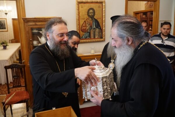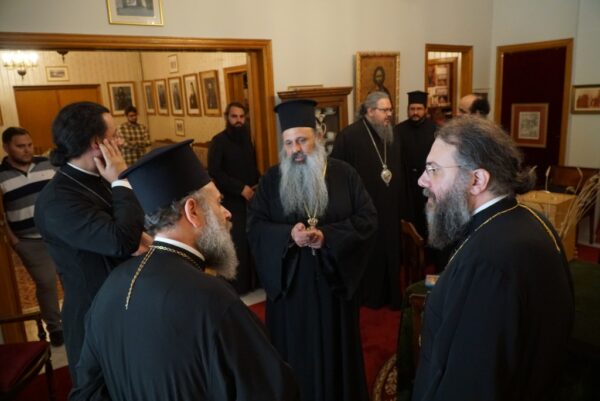 Το μεσημέρι ο Μητροπολίτης κ. Χρυσόστομος δεξιώθηκε τους Αγίους Αρχιερείς και είχαν την ευκαιρία να ομιλήσουν περί πνευματικών θεμάτων.