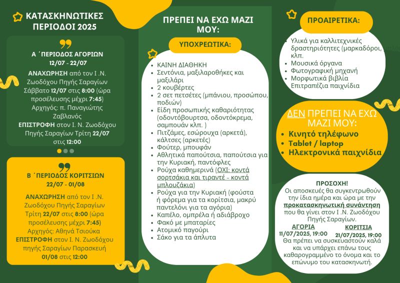 Η πρώτη περίοδος για τ’ αγόρια από 12 έως 22 Ιουλίου 2025.