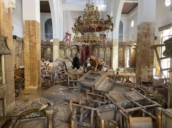 Είχε συνομιλία με τους εφημερίους, αλλά και ανθρώπους που έζησαν στιγμές αγωνίας την ώρα των πλημμυρών. Δόξασε το Θεό που δεν είχαμε ανθρώπινα θύματα και μετέδωσε κλίμα αισιοδοξίας και τόνισε ιδιαιτέρως την αποφασιστικότητα να αποκατασταθούν οι ζημιές τάχιστα και ενημέρωσε τους εφημερίους για την άμεση αποκατάσταση από συνεργεία καθαριότητας που θα διαθέσει η Ιερά Μητρόπολη.