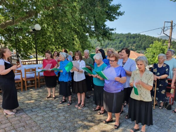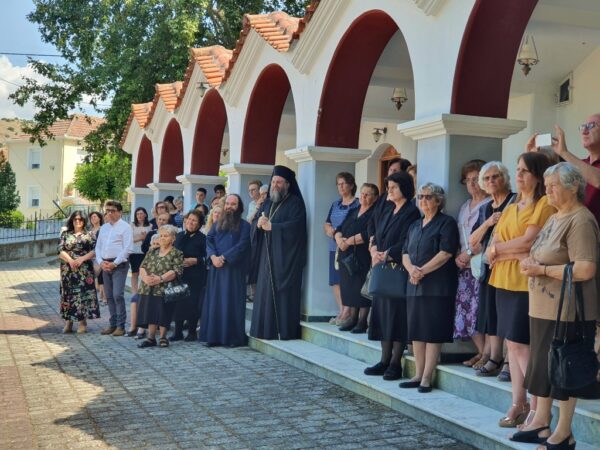 Μέτα το πέρας της Αρχιερατικής Θείας Λειτουργίας, ο Σεβασμιώτατος Μητροπολίτης, άκουσε στον αύλειο χώρο του Ιερού Ναού τη νεοσύστατη ενοριακή χορωδία κυριών να τραγουδά παραδοσιακά άσματα.