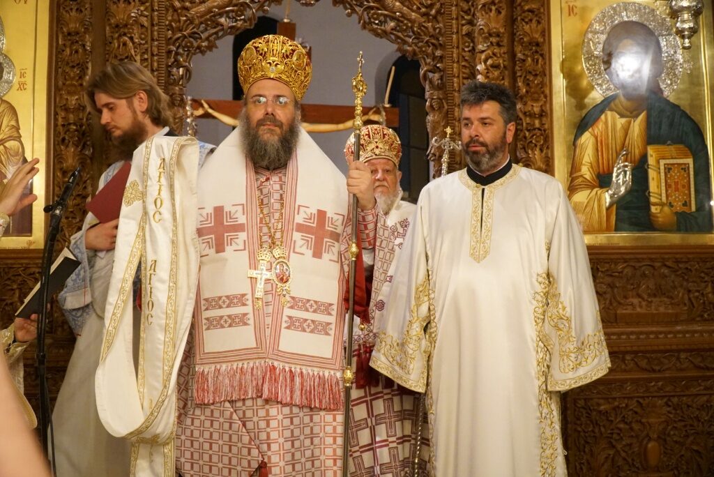 Κατά την Ιερά Αγρυπνία ιερούργησε ο Σεβ. Μητροπολίτης Τρίκκης κ. Χρυσόστομος και συλλειτούργησε ο Θεοφιλέστατος Επίσκοπος Μοζαμβίκης κ. Χρυσόστομος πλαισιούμενοι από ιερείς της πόλεως των Τρικάλων και των γύρω χωρίων.