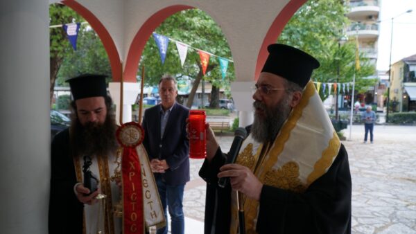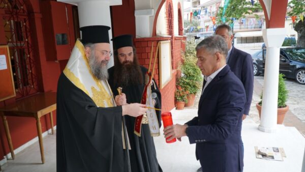 Το απόγευμα της Δευτέρας 27 Απριλίου 2020 ο Σεβασμιώτατος Μητροπολίτης Τρίκκης και Σταγών κ. Χρυσόστομος υποδέχθηκε στα προπύλαια του Ιερού Ναού Αγίων Κωνσταντίνου και Ελένης Τρικάλων το Άγιο Φώς από τον Περιφερειάρχη Θεσσαλίας κ. Κωνσταντίνο Αγοραστό και τον Αντιπεριφερειάρχη Τρικάλων κ. Χρήστο Μιχαλάκη.