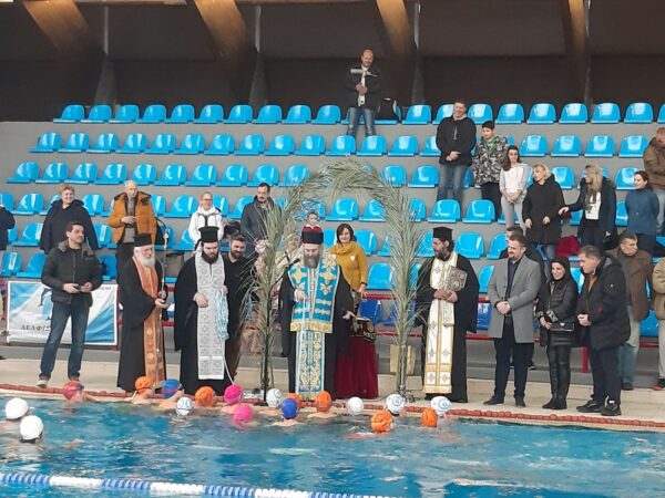 Ξεχωριστή ήταν η στιγμή όταν στο νερό της πισίνας έπεσαν οι κολυμβητές για να τον πιάσουν τον Τίμιο Σταυρό.