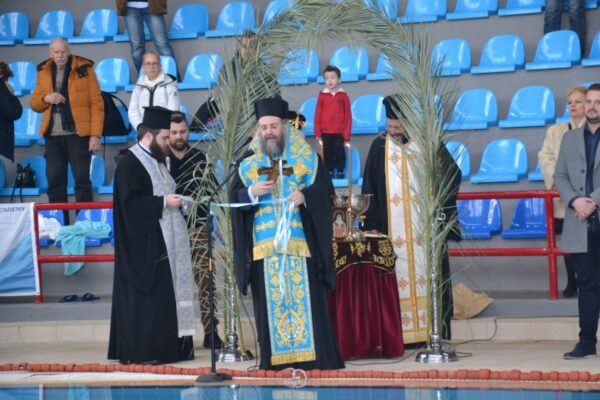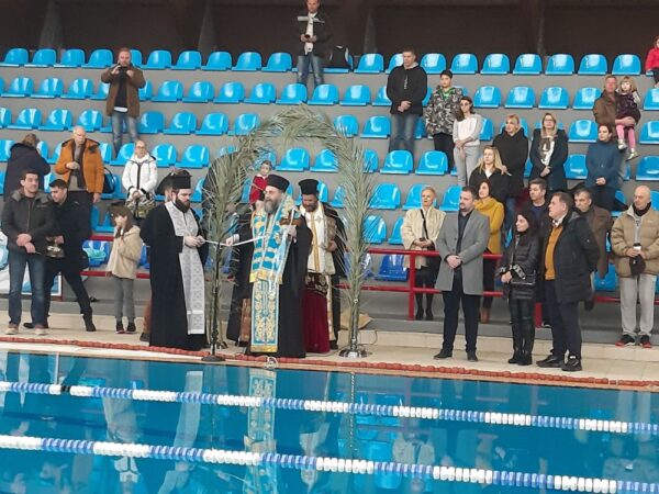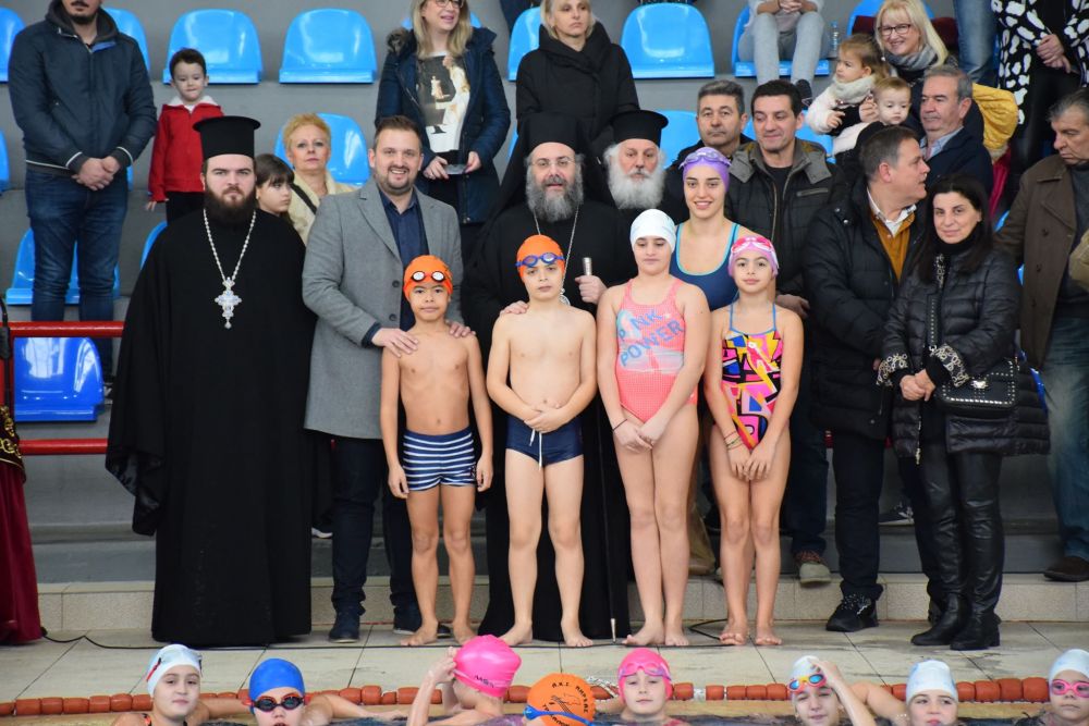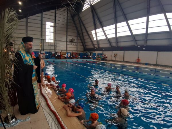 Ξεχωριστή ήταν η στιγμή όταν στο νερό της πισίνας έπεσαν οι κολυμβητές για να τον πιάσουν τον Τίμιο Σταυρό.