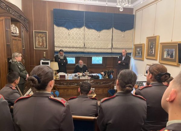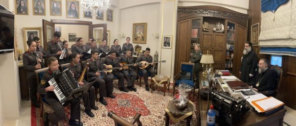 Μέσα σε χαρούμενη ατμόσφαιρα, η οποία πηγάζει από το χαρμόσυνο γεγονός της κατά Σάρκα Γεννήσεως του Κυρίου ημών Ιησού Χριστού, οι σπουδαστές της Σχολής Μονίμων Υπαξιωματικών Τρικάλων προσήλθαν το πρωί της Τρίτης 20 Δεκεμβρίου 2022 στο Επισκοπείο της Ιεράς Μητροπόλεως Τρίκκης, Γαρδικίου και Πύλης για να ψάλλουν τα παραδοσιακά Κάλαντα και να τραγουδήσουν επίκαιρους Χριστουγεννιάτικους ύμνους, μεταφέροντας και αυτοί με το δικό τους αγνό και παραδοσιακό τρόπο, το μεγάλο μήνυμα της Χαράς, της Ειρήνης, της Αγάπης και της Καταλαγής που πηγάζει μέσα από το Σπήλαιο της Βηθλεέμ.