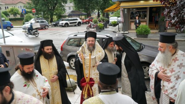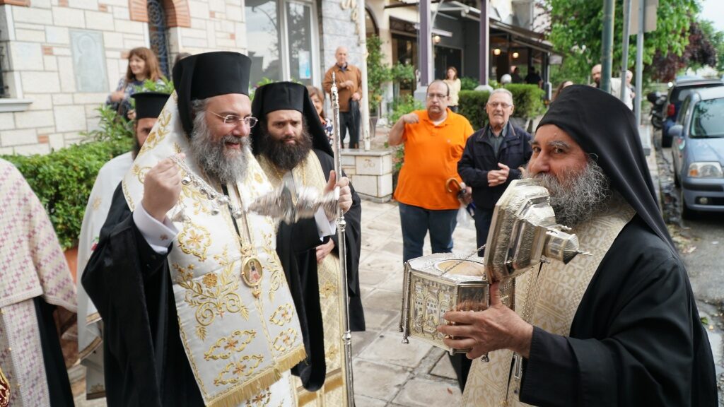 Με την πρέπουσα εκκλησιαστική τάξη την Πέμπτη 21 Μαΐου 2020 ο Σεβασμιώτατος Μητροπολίτης Τρίκκης και Σταγών κ. Χρυσόστομος επικεφαλής του Ιερού κλήρου και του λαού προϋπάντησε πανδήμως έμπροσθεν των προπυλαίων του Ιερού Προσκυνηματικού Ναού Αγίου Βησσαρίωνος την Ιερά και Χαριτόβρυτο Κάρα του Αγίου Βησσαρίωνος.