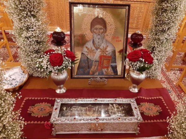 Ο Γενικός Αρχιερατικός Επίτροπος της Ιεράς Μητροπόλεως Τρίκκης, Γαρδικίου και Πύλης Αιδεσιμολογιώτατος Πρωτοπρεσβύτερος Λάμπρος Κολώνας κήρυξε εμπνευσμένα το Θείο Λόγο ομιλώντας περί της βιωτής και τιμής του Αγίου Σπυρίδωνος.