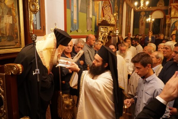 Με την άφιξη του Ιερού Λειψάνου στον Ιερό Ναό τελέσθηκε η επίσημος Δοξολογία και εν συνεχεία ο Σεβασμιώτατος Μητροπολίτης Ναζαρέτ κ. Κυριακός χοροστάτησε κατά τη διάρκεια του Εσπερινού συμπαραστατούμενος από την συνοδεία του και πολλούς ιερείς της πόλεως και των χωρίων των Τρικάλων.