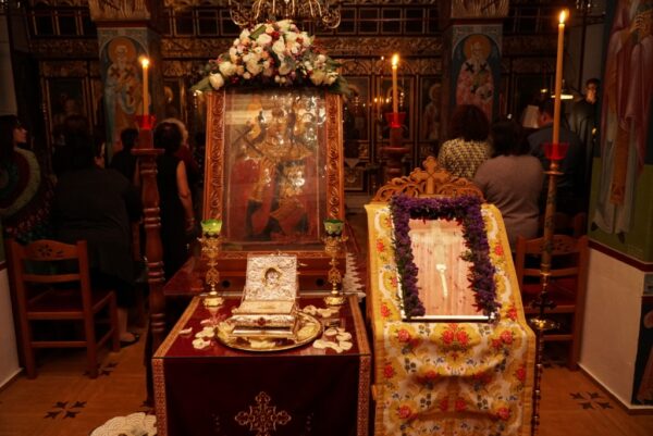 Μετά το πέρας της υποδοχής, με ευλάβεια κλήρος και λαός, συνόδευσε την Ιερά Λιτανεία προς τον Ιερό Ναό Αγίας Κυριακής.