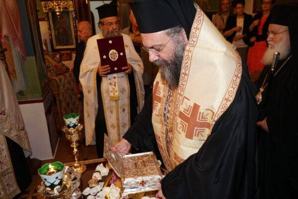 Στο τέλος του Εσπερινού, μετά την προσφώνηση του Ποιμενάρχου κ. Χρυσοστόμου, ο Σεβασμιώτατος Μητροπολίτης Ναζαρέτ κ. Κυριακός κήρυξε εμπνευσμένα το Θείο Λόγο τονίζοντας την σημασία των Ιερών Λειψάνων στη ζωή της Εκκλησίας και στην ενίσχυση που λαμβάνουμε από τους Αγίους στον δύσκολο αγώνα μας στον στίβο της ζωής.