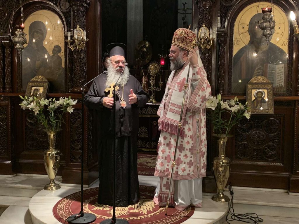 Στην Ιερά Αγρυπνία προεξήρχε ο Σεβασμιώτατος Μητροπολίτης Τρίκκης, Γαρδικίου και Πύλης κ. Χρυσόστομος, με την ευκαιρία παραμονής στην Αθήνα λόγω της συμμετοχής του στις εργασίες της Διαρκούς Ιεράς Συνόδου της Εκκλησίας της Ελλάδος, πλαισιούμενος από ιερείς του Ναού.
