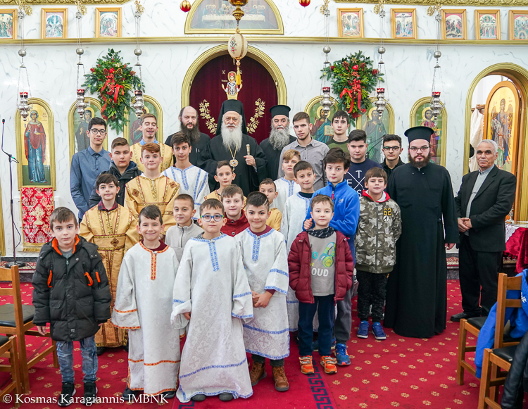 Στο τέλος της Θείας Λειτουργίας ο Σεβασμιώτατος τέλεσε μνημόσυνο υπέρ αναπαύσεως των κεκοιμημένων μελών του Φαρμακευτικού Συλλόγου Ημαθίας. Στην συνέχεια στο πνευματικό κέντρο του Ιερού Ναού τα παιδιά από τα κατηχητικά τμήματα του Ιερού Ναού έψαλλαν τα κάλαντα των Χριστουγέννων στον Σεβασμιώτατο.